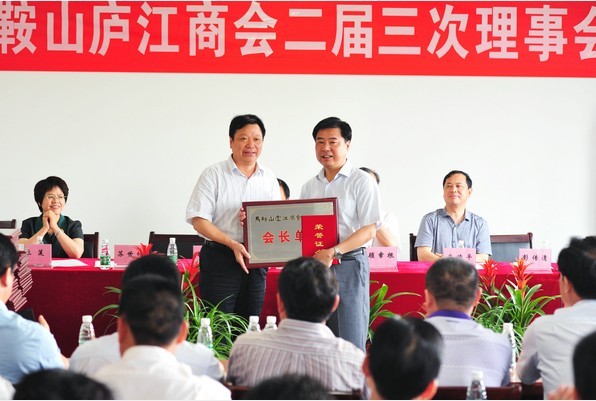 2013年6月23日上午,马鞍山庐江商会举行了二届三次理事会暨慈善书画院来商会送墨宝活动,会议在商会三楼会议室举行。参加会议的领导有:市委常委、统战部部长毛长江;市政府副市长高晓平,市政协原主席章应民,政协原主席、马钢公司原党委书记顾章根,市委统战部副部长、市工商联党组书记张莲。商会名誉会长 苏世怀、彭传清、盛昌科参加会议。会议由商会名誉会长兼秘书长盛昌科主持。