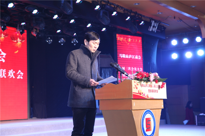庐江商会党支部书记黄智德宣读《关于2014年度马鞍山庐江商会先进会员单位、先进个人的表彰决定》