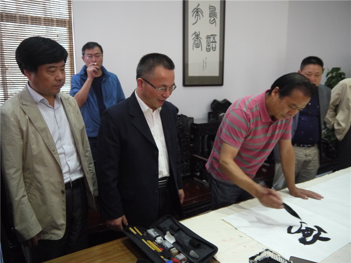 致工党上海市委常委、嘉定区委主委、嘉定区人大常委、嘉定区行政服务中心副主任秦高荣现场挥毫泼墨