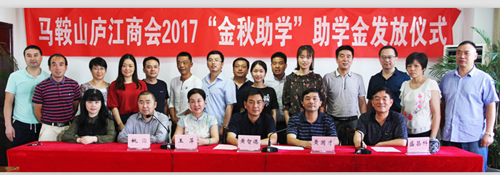 2017“金秋助学”助学金发放仪式,马鞍山庐江商会会员及在马鞍山庐江籍人士金榜题名的17名子女受到资助。